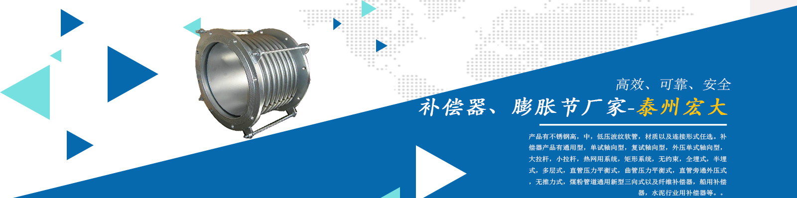 泰州市宏大機(jī)械設(shè)備有限公司是一個(gè)企業(yè)內(nèi)部管理嚴(yán)謹(jǐn),工作作風(fēng)穩(wěn)健,職工素質(zhì)水平較高,經(jīng)濟(jì)實(shí)力雄厚,產(chǎn)品質(zhì)量放心,外部形象良好的企業(yè)。本公司專業(yè)從事補(bǔ)償器廠家,膨脹節(jié)廠家,膨脹節(jié)補(bǔ)償器,其中有不銹鋼高,中,低壓波紋軟管,材質(zhì)以及連接形式任選。補(bǔ)償器產(chǎn)品有通用型,單試軸向型,復(fù)試軸向型,外壓單式軸向型,大拉桿,小拉桿,熱網(wǎng)用系統(tǒng),矩形系統(tǒng),無約束,全埋式,半埋式,多層式,直管壓力平衡式,曲管壓力平衡…...